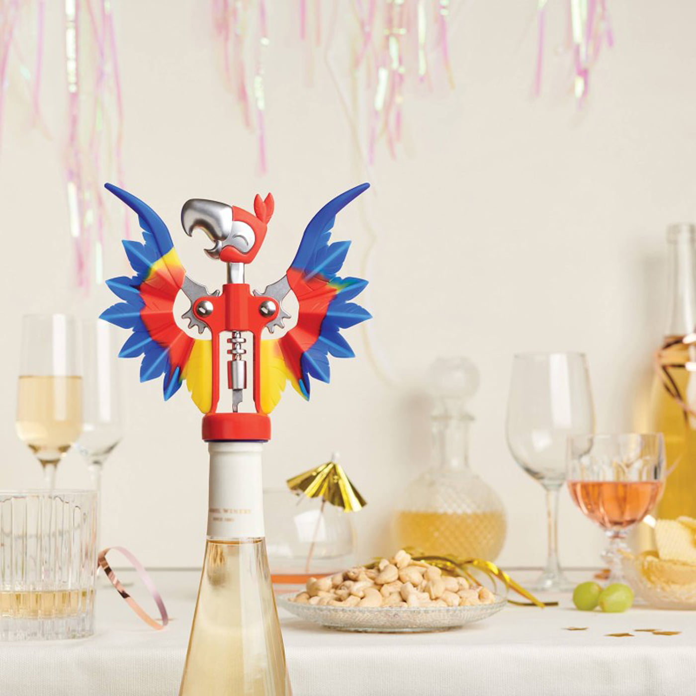 Pinot est un tire-bouchon à crémaillère de qualité optimale. Sa tête de perroquet sert aussi de décapsuleur. Le levier à deux ailes permet une extraction du bouchon en toute facilité.